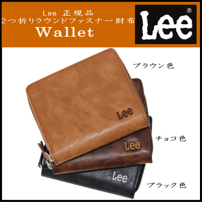 【送料無料】Lee(リー) 本革風 二つ折りラウンドファスナー財布 小銭入れ付き 0520371 ブラウン色 チョコ色 ブラック色/財布 メンズ 2つ折り財布 ブランド/財布 メンズ 折財布 ブランド