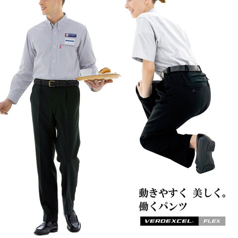 秋冬 ベルデクセルパンツ [ストレッチ素材] ミドリ安全 もっと、動ける服を VERDEXCEL FLEX [ベルデクセル フレックス] (作業服 作業着)レディース メンズ 作業ズボン イージーフレックスパンツ VE120下 ブラック 仕事着